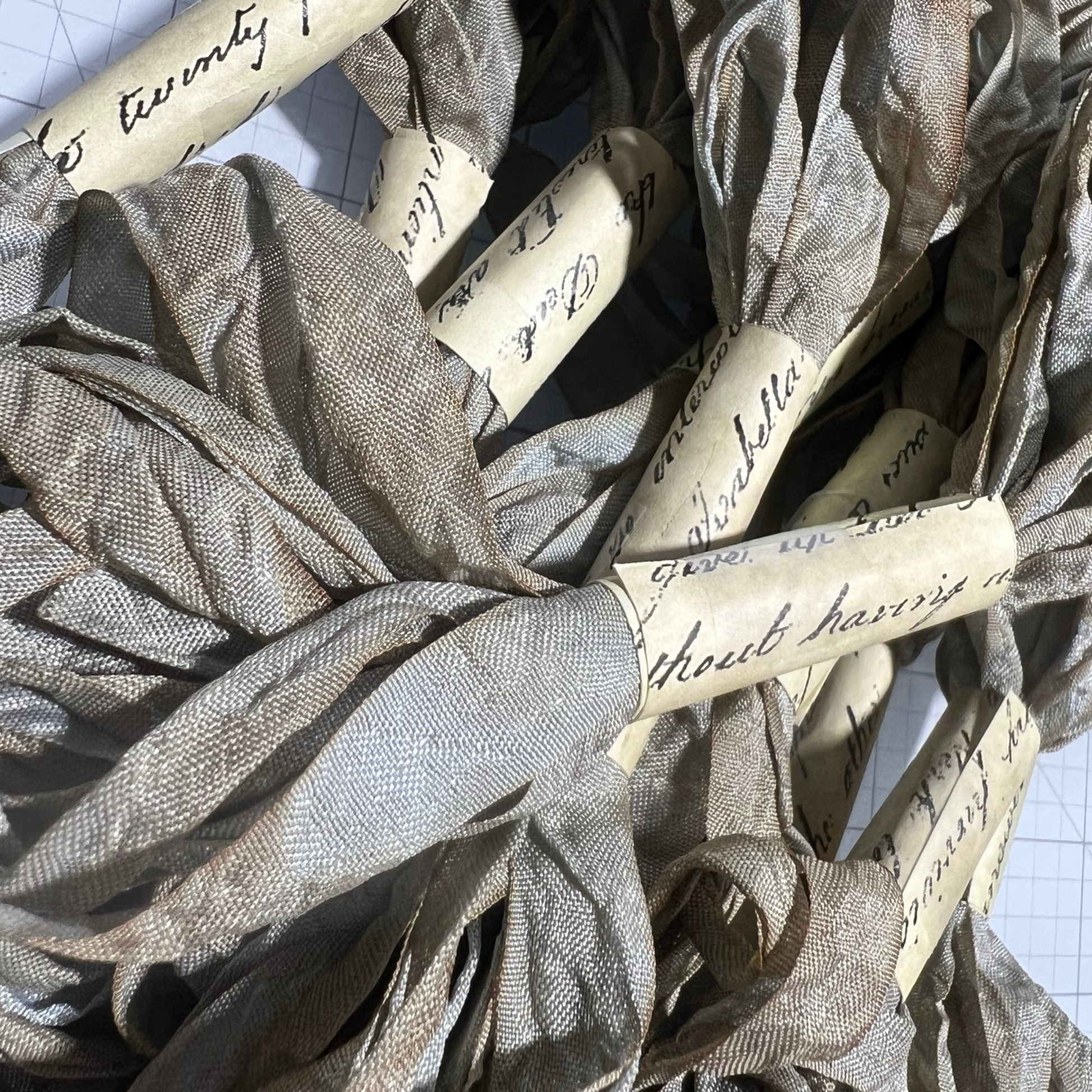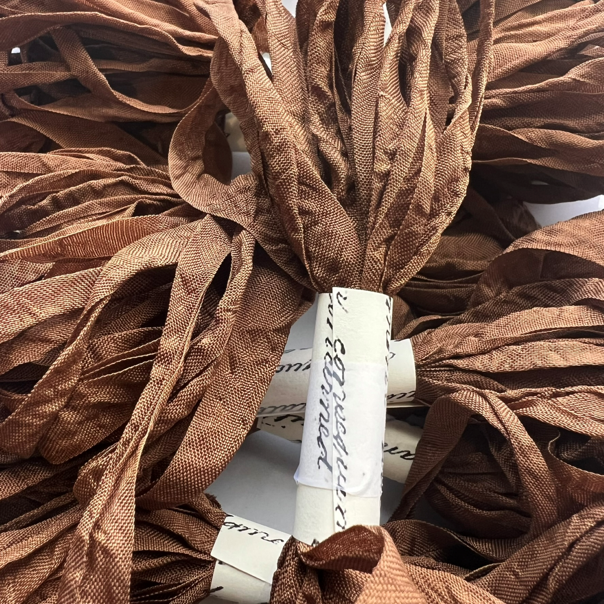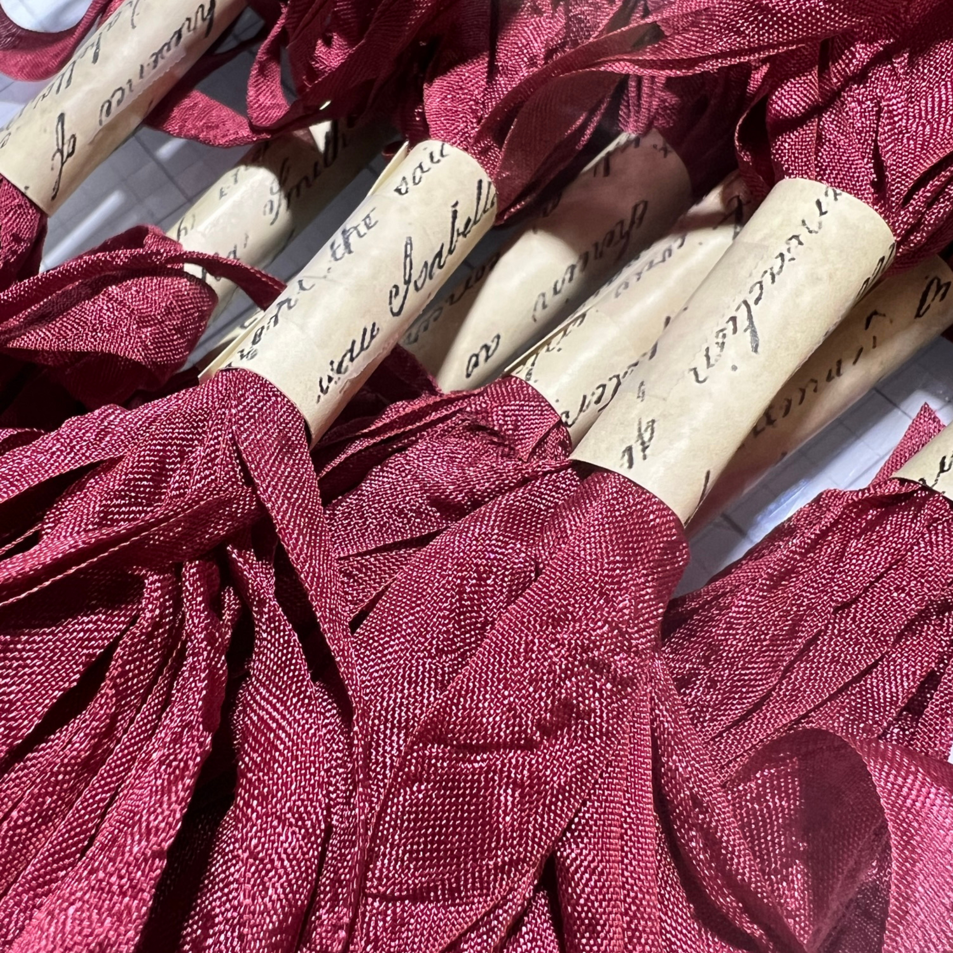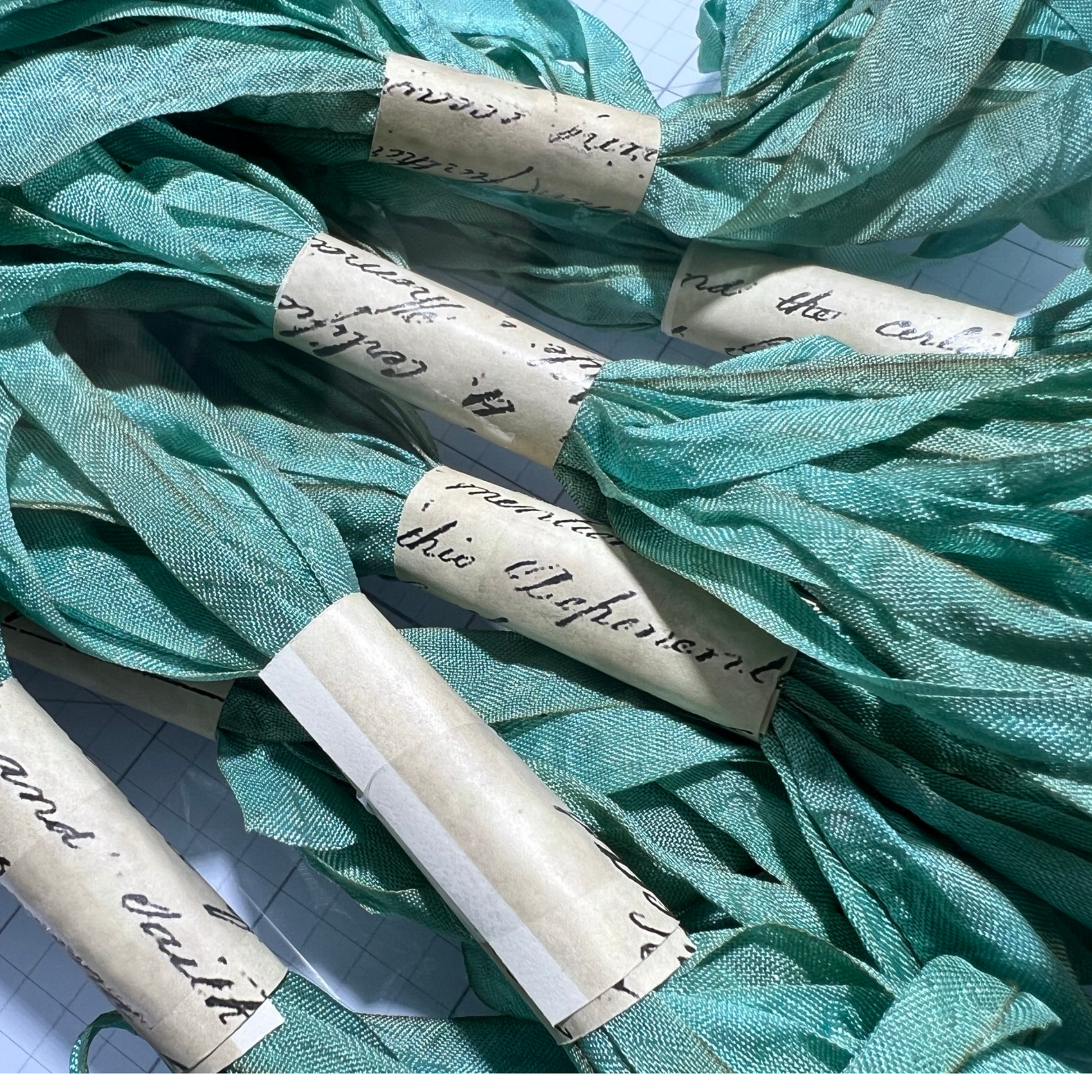 Introducing Aged and Distressed Ribbon by Monahan Papers—the perfect addition to your mixed media art projects! Available in a variety of vintage-inspired colors, these beautiful ribbon packs are ideal for scrapbooking, ornanments, junk journals, wrapping presents, and any other unique DIY projects you can think of. Each 5-yard bundle is crafted with 9/16th inch rayon ribbon that has been dyed, distressed, and aged. It provides a truly one-of-a-kind look to your gifts and decorations. Even better, the shrinkage and color variations achieved during the dye process only adds to the uniqueness of each ribbon bundle.Â
