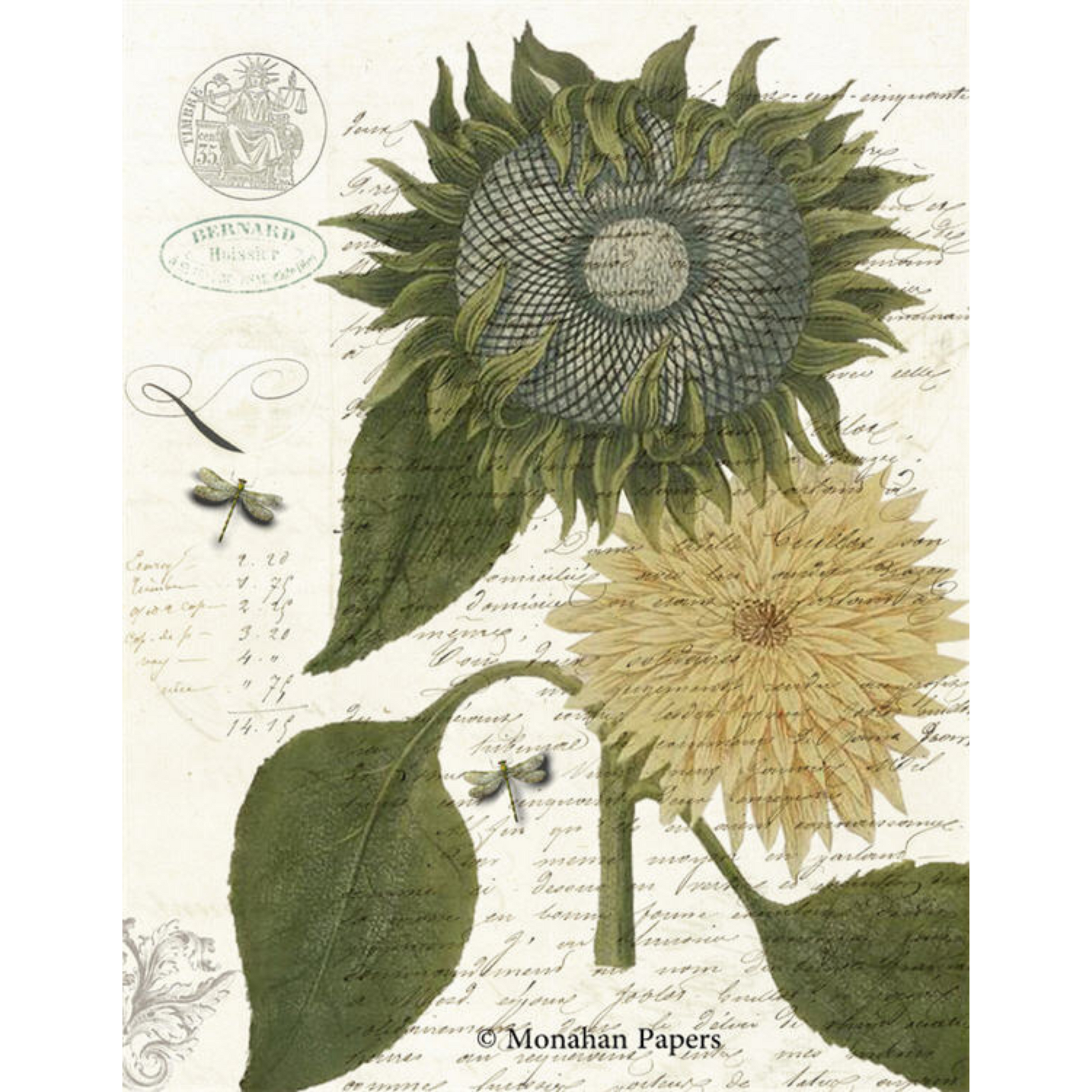 This sunflower-themed paper is perfect for adding a touch of vintage elegance to any project. The gold and green colors are absolutely stunning together, and the intricate details of the sunflowers are sure to impress.Â