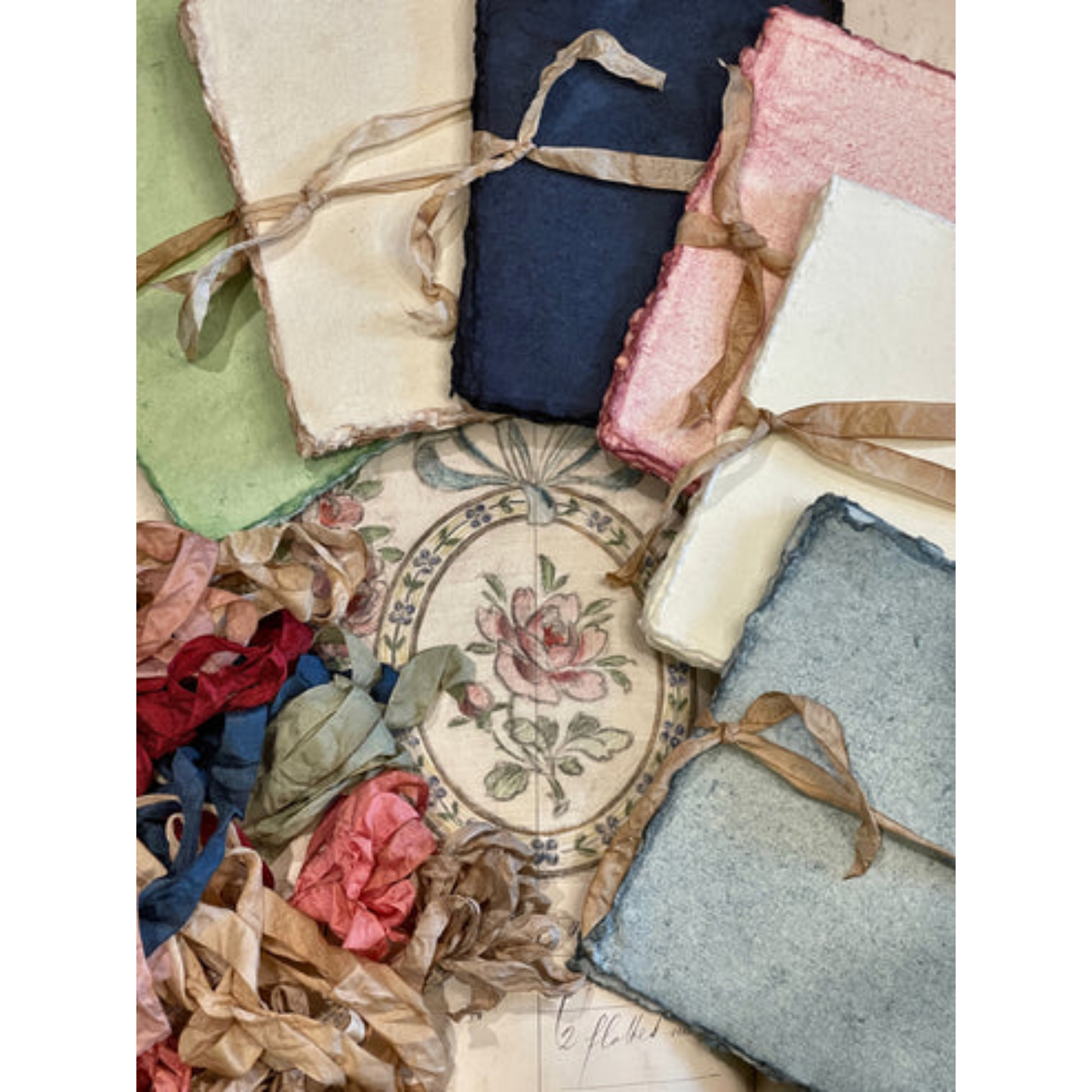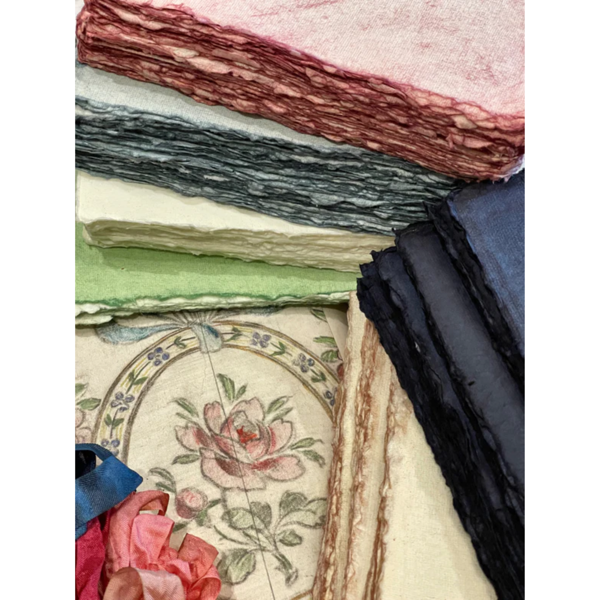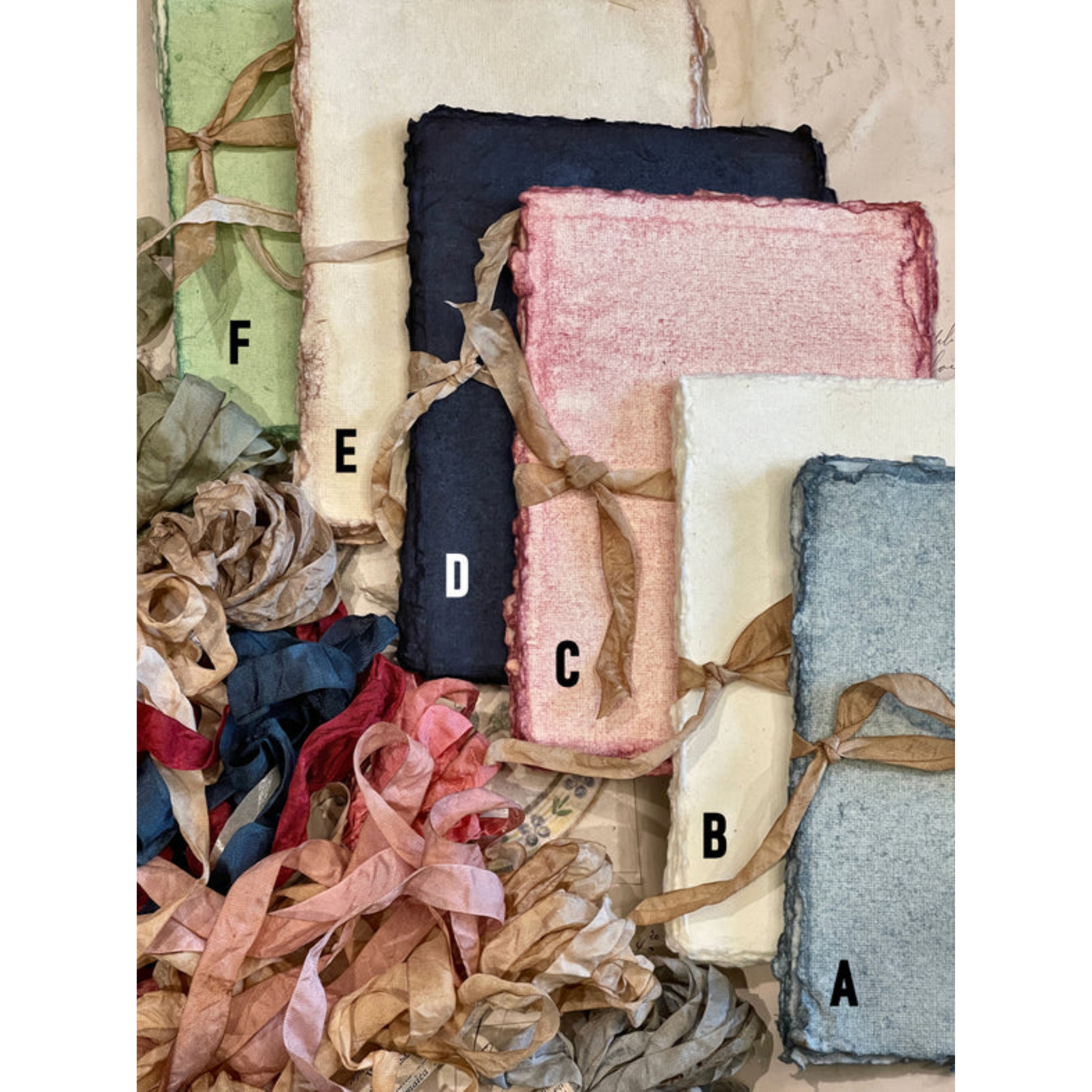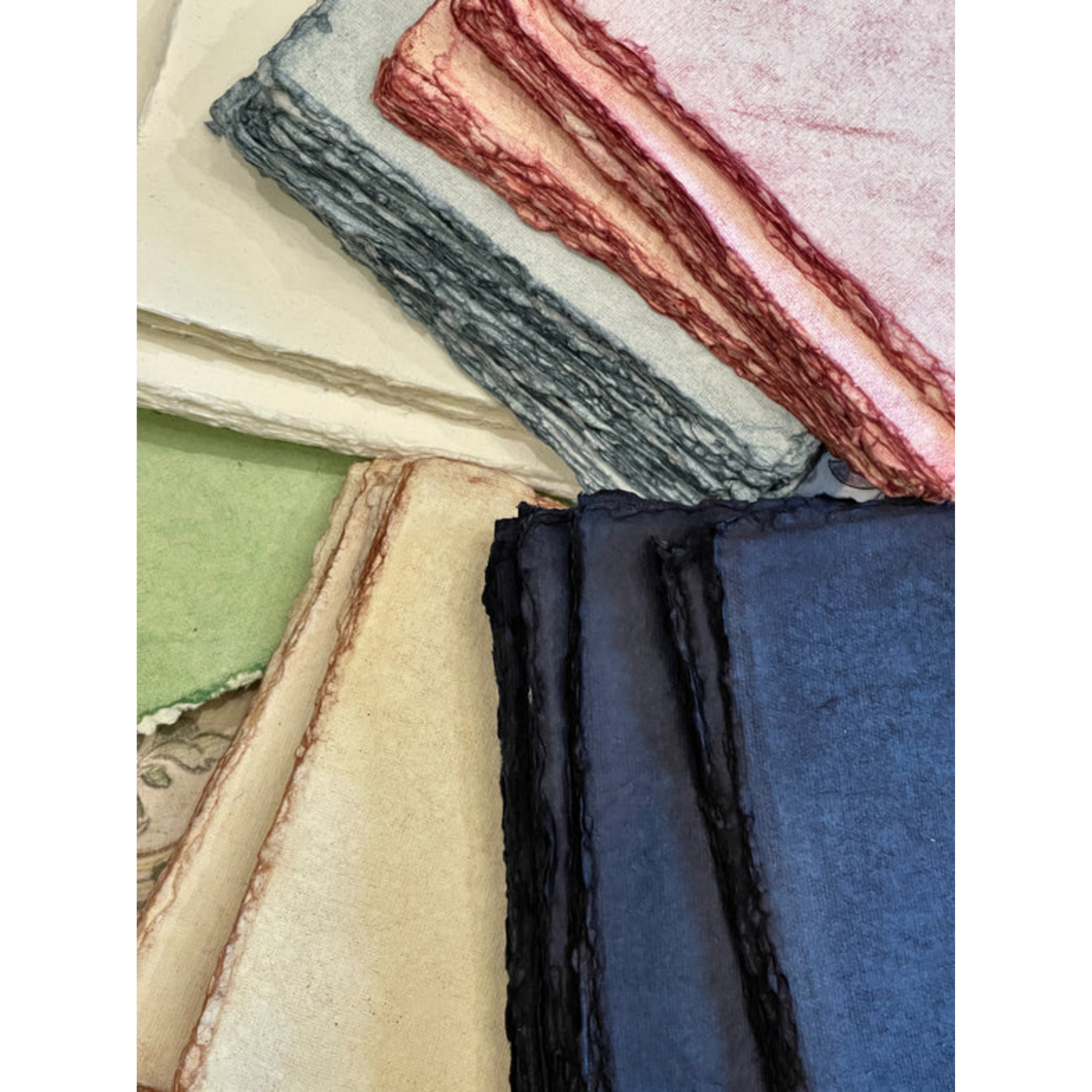 Deckled Edge Paper Bundles. Each bundled set includes ten sheets per package. Available in 6 hand-dyed colors.