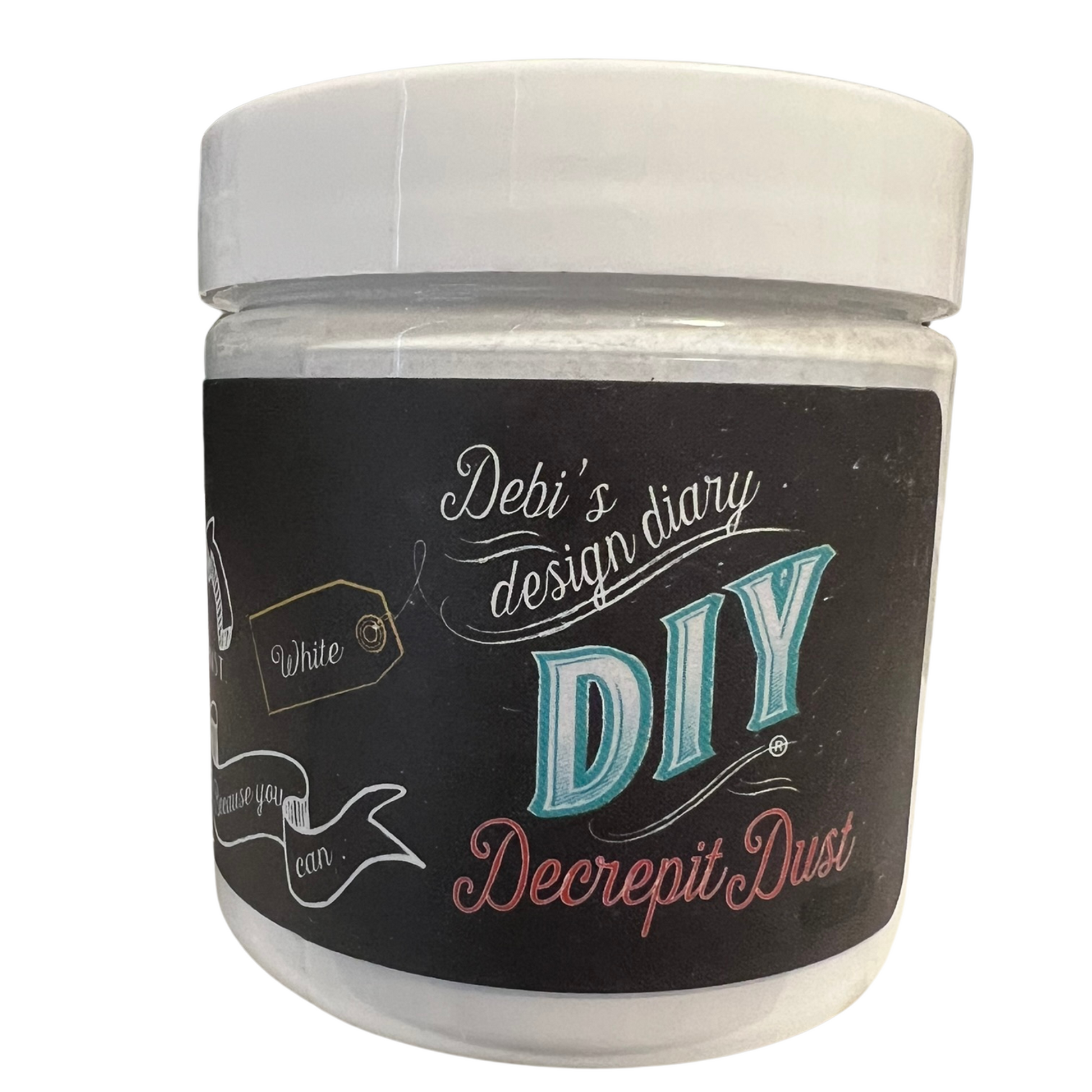 Decrepit Dust by DIY Paint - Debi's Design Diary. 4 oz (25 gm) by weight, not volume. Antiquing dust to achieve aging effect on moldings and more. Available in 3 colors: Dark, White & Warm.