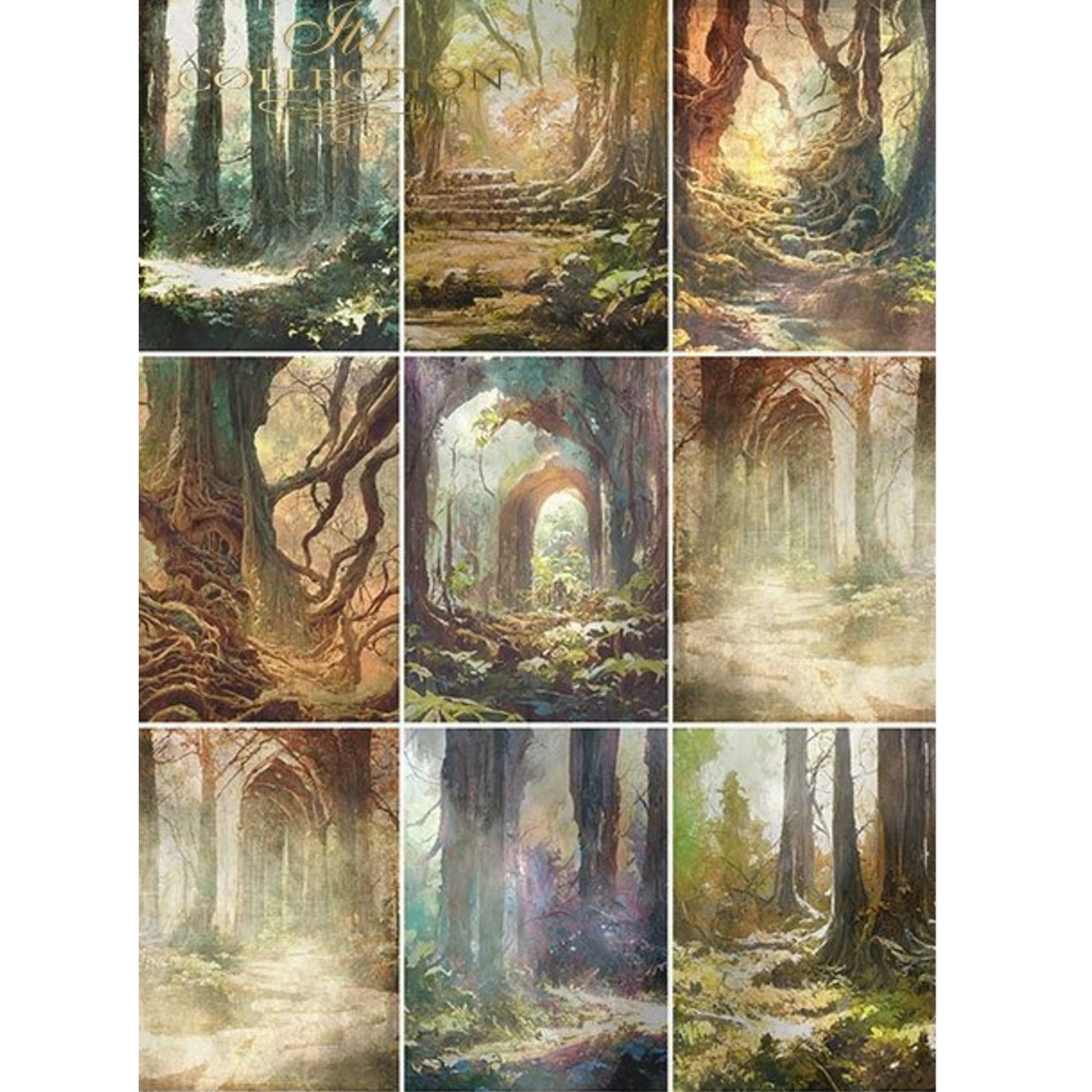 Create a captivating autumn scene this season by decorating with the Mysterious Forest 9 pack Journaling Cards by ITD Collection.This 9 image sheet features delightful shades of fall, evoking the feeling of a misty autumnal forest. Ideal for mixed media projects, home decor, scrapbooking and more.