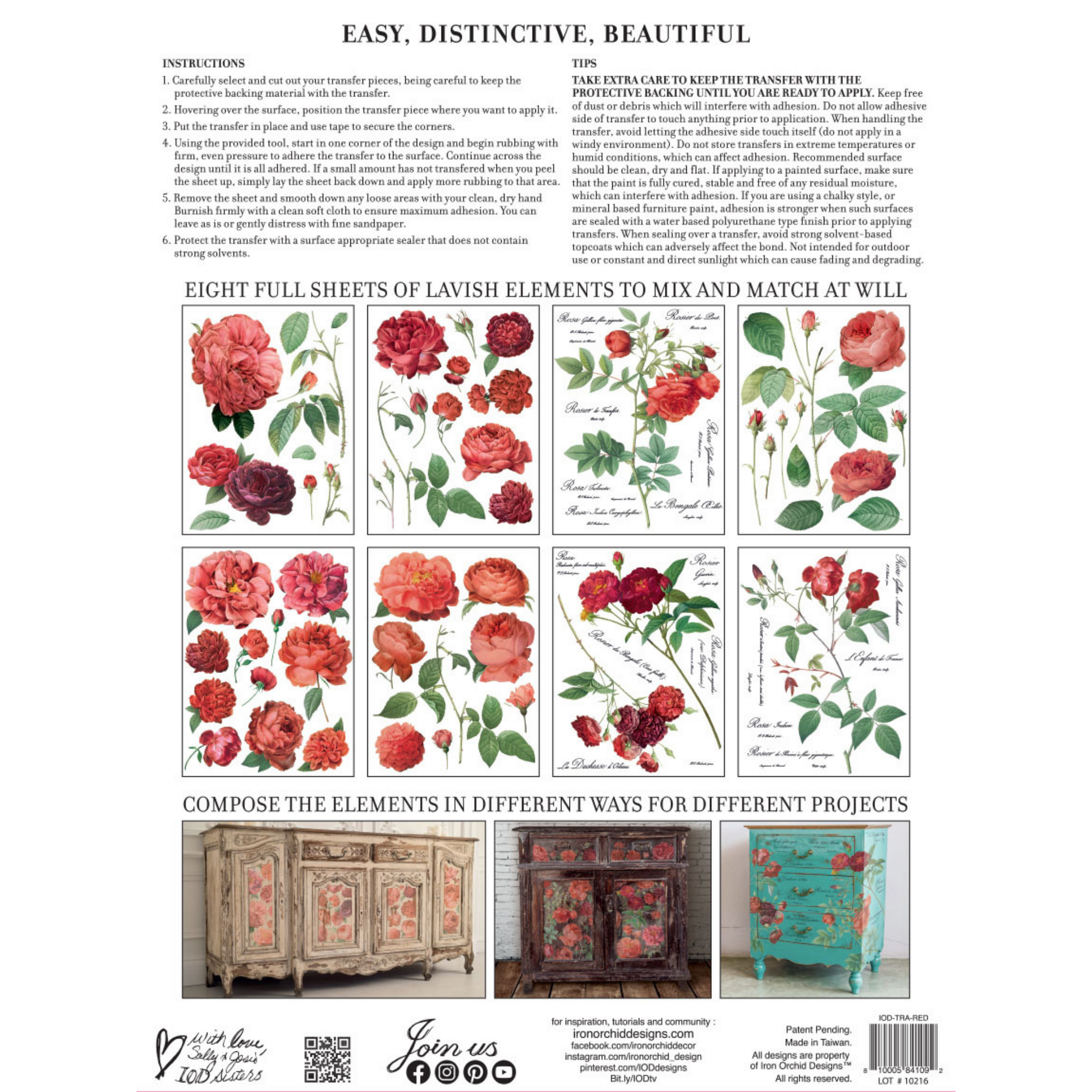 Use IOD furniture transfer decals to add visual style to your upcycled furniture and home décor projects. IOD furniture appliques are applied by rubbing them onto your project surface and can be cut, rearranged and overlapped to create new and unique designs.Â